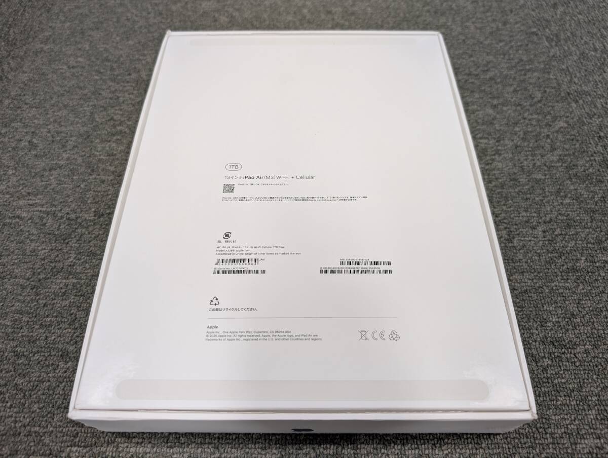 新品 未使用 Apple iPad Air 13インチ Wi-Fi+Cellular 1TB 2025年春モデル MCJF4J/A [ブルー] softbankネットワーク判定 ▲