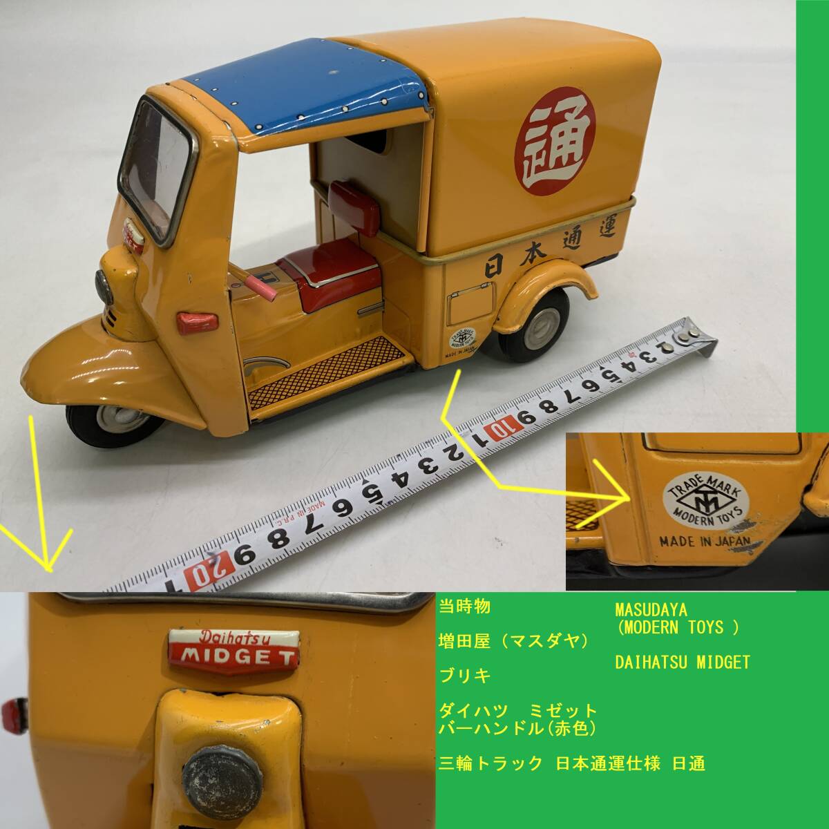 ジャンク 当時物 増田屋(マスダヤ) ブリキ ダイハツ ミゼット バーハンドル(赤色) 三輪トラック 日本通運仕様 日通 MODERN TOYS MIDGET