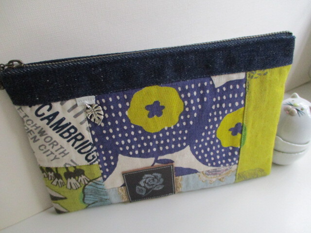 Product name: ハンドメイド * ちょっと大きめ 通帳ポーチ * 綿麻 デニム 等 いろいろ * パッチ :2 : ♪