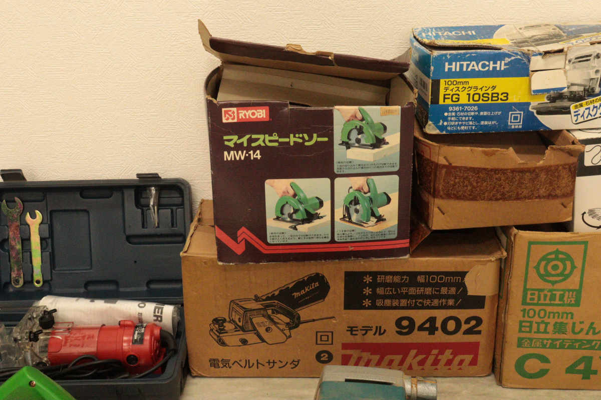 ★ 電動まとめ MAKITA トリマ 日立工機 リョービ RYOBI MR SUNSHINE 充電式インパクトドライバ 6990D 電気ベルトサンダ 9402 EWT-400 集じん丸のこ C4YA1 木工用丸ノコ マイスピードソー MW-14 MD-10 芝生バリカン 120mm 電気ディスクグラインダ 100mm FG 10SB3 工具 DIY 日曜大工_EIR_C1016-I003