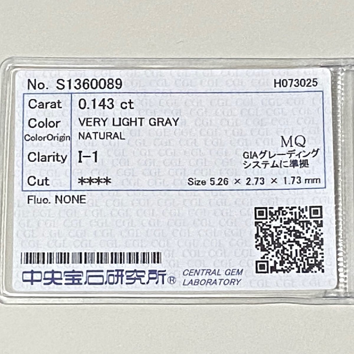 Product name: 中宝研ソ付き Very Light Gray/ベリーライトグレー ダイヤ ルース 0.143ct I-1 MQ/マーキス 天然カラーダイヤモンド ダイヤルース