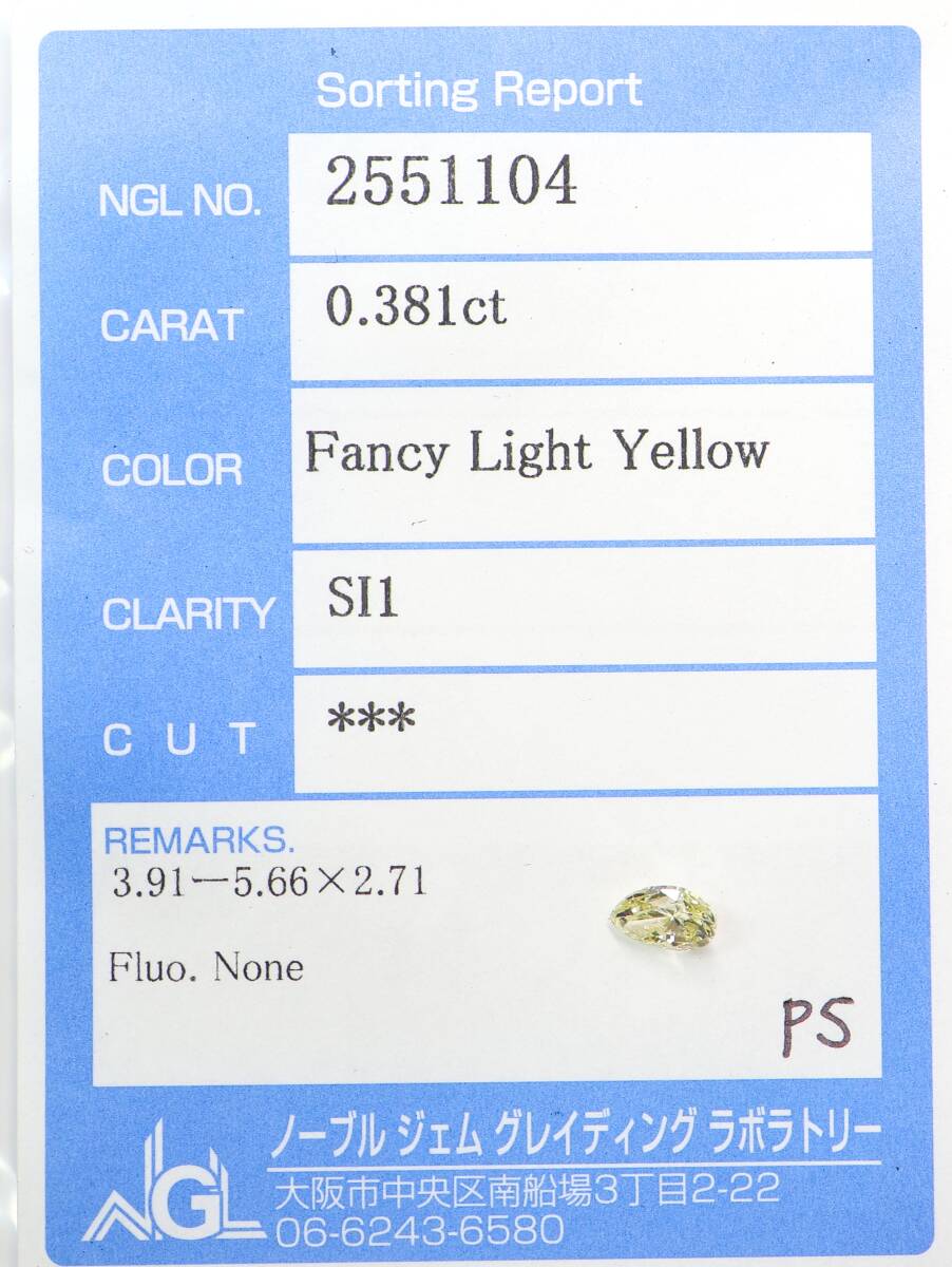 Product name: 【100円~】0.381ct 天然ダイヤ FANCY LIGHT YELLOW(ナチュラルカラー)SI1 PS