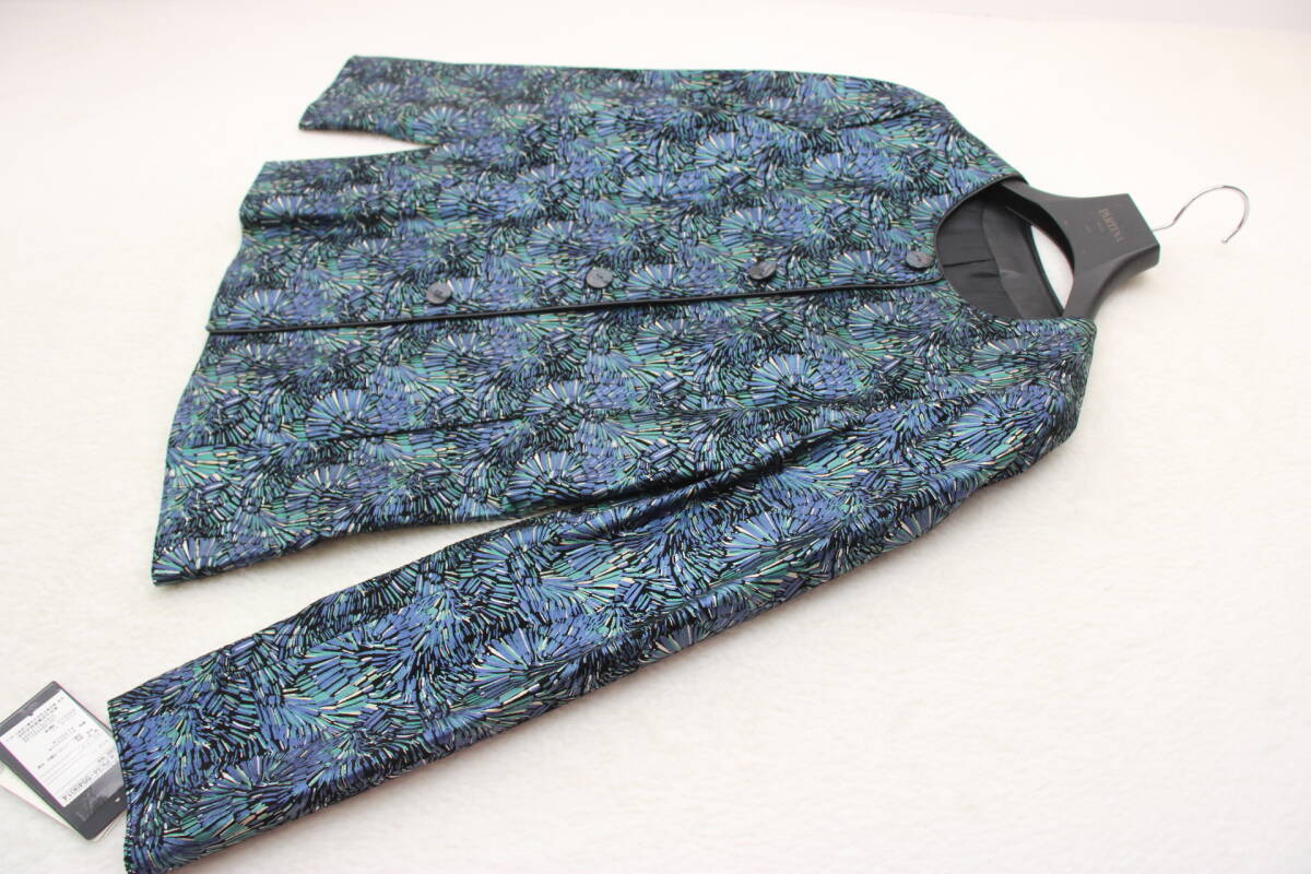 Product name: 5687 新品タグ付き 高級本革レザーノーカラーロングジャケット ブルー11号 定価¥52,000+税