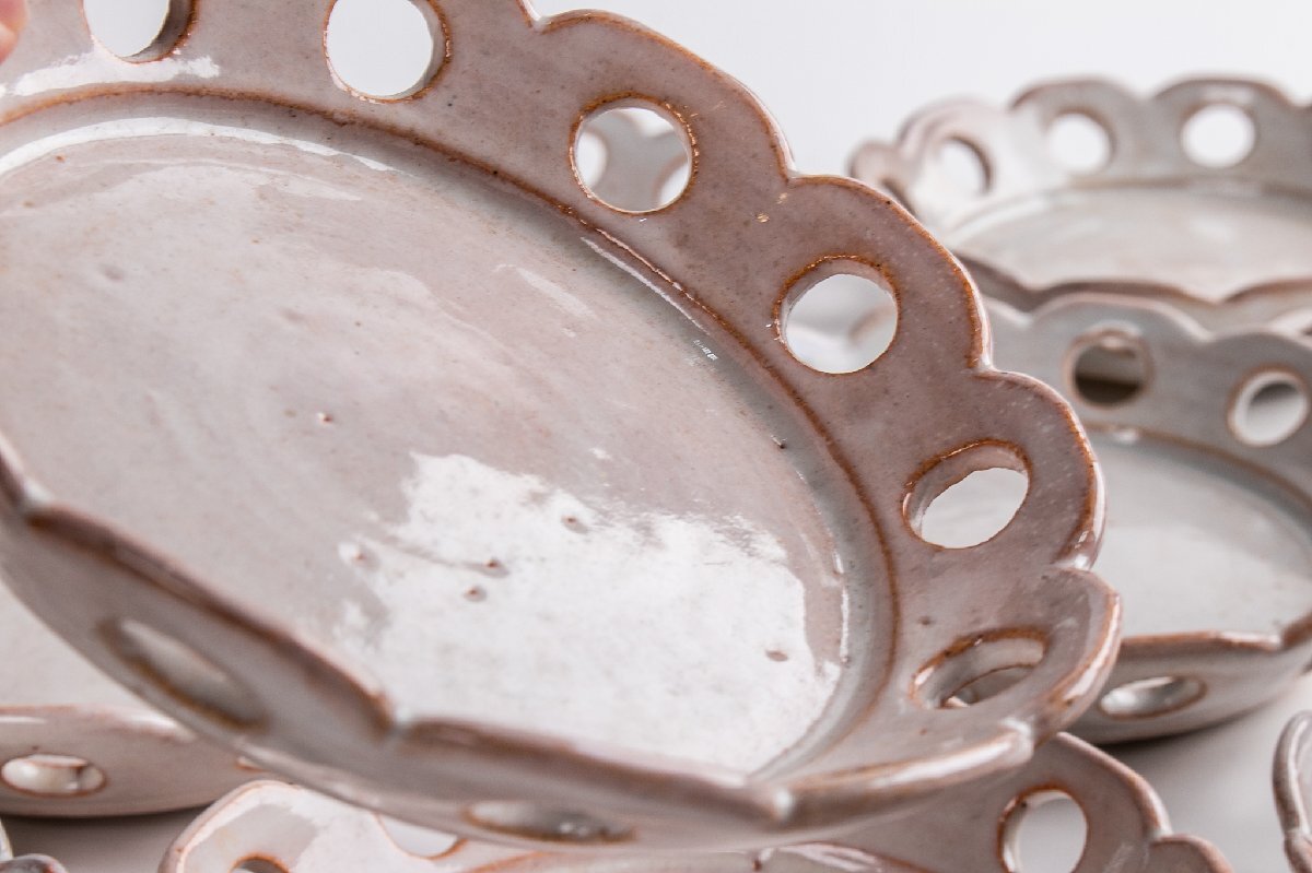 Product name: 【うつわ】十二代 坂倉新兵衛 萩焼 水玉透皿 10客 共箱 F013 茶道具 古美術 骨董 古玩 日本料理 懐石 料亭