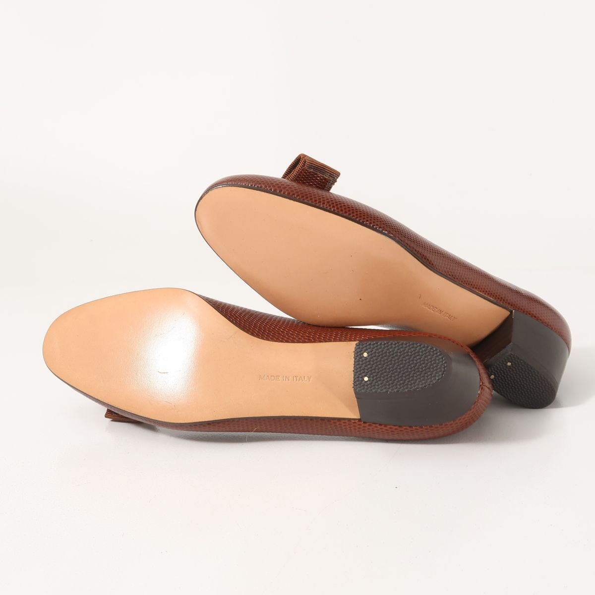 Product name: GS3769▲イタリア製 サルヴァトーレフェラガモ VARA ヴァラリボン リザード型押しレザー パンプス サイズ6C/約23cm相当 靴 ブラウン
