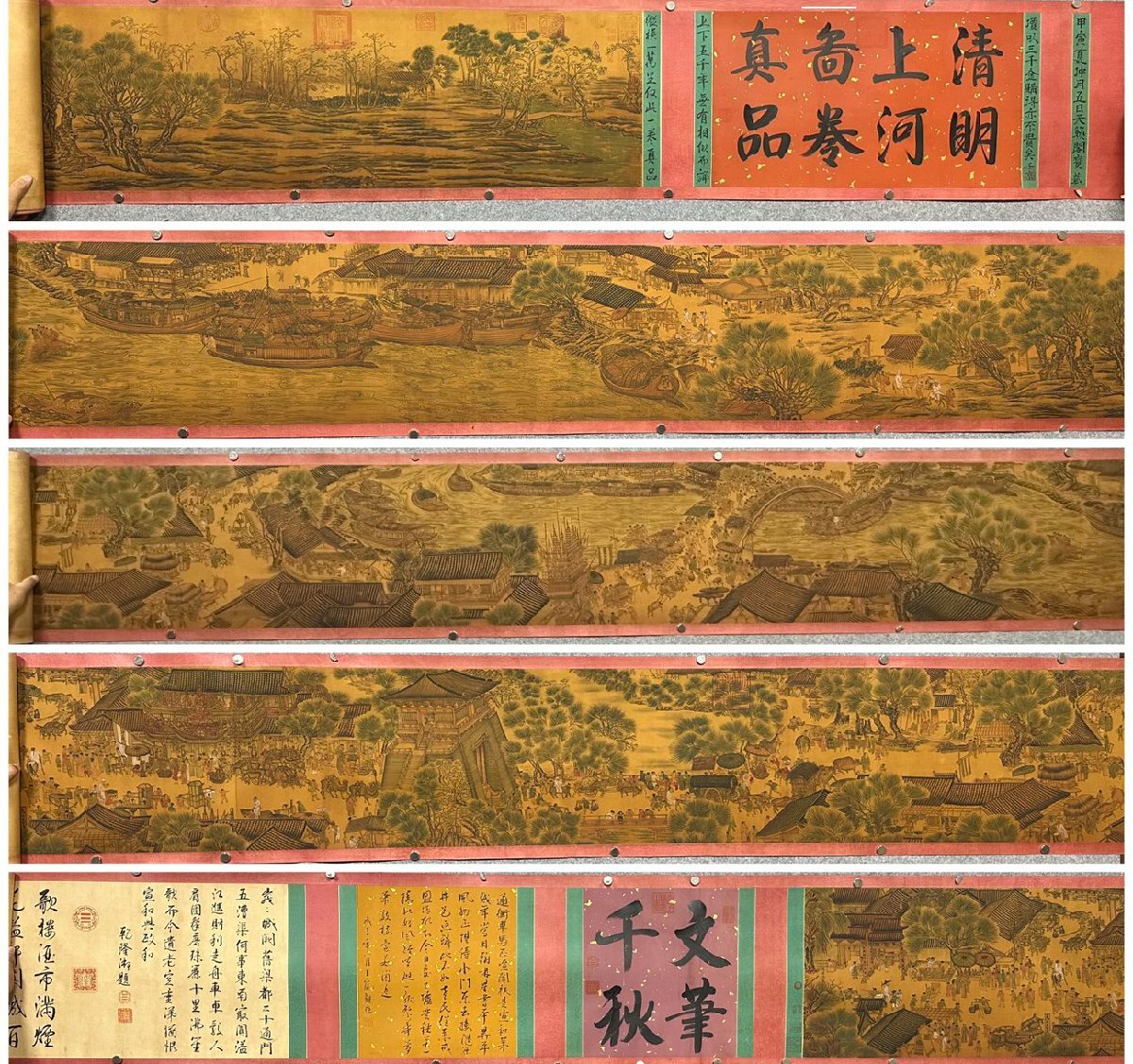 【安】中国宋時代画家「張択端書」絹本「清明上河図長巻」巻き物 中国画 墨寶妙品 中国書道 古美術 400