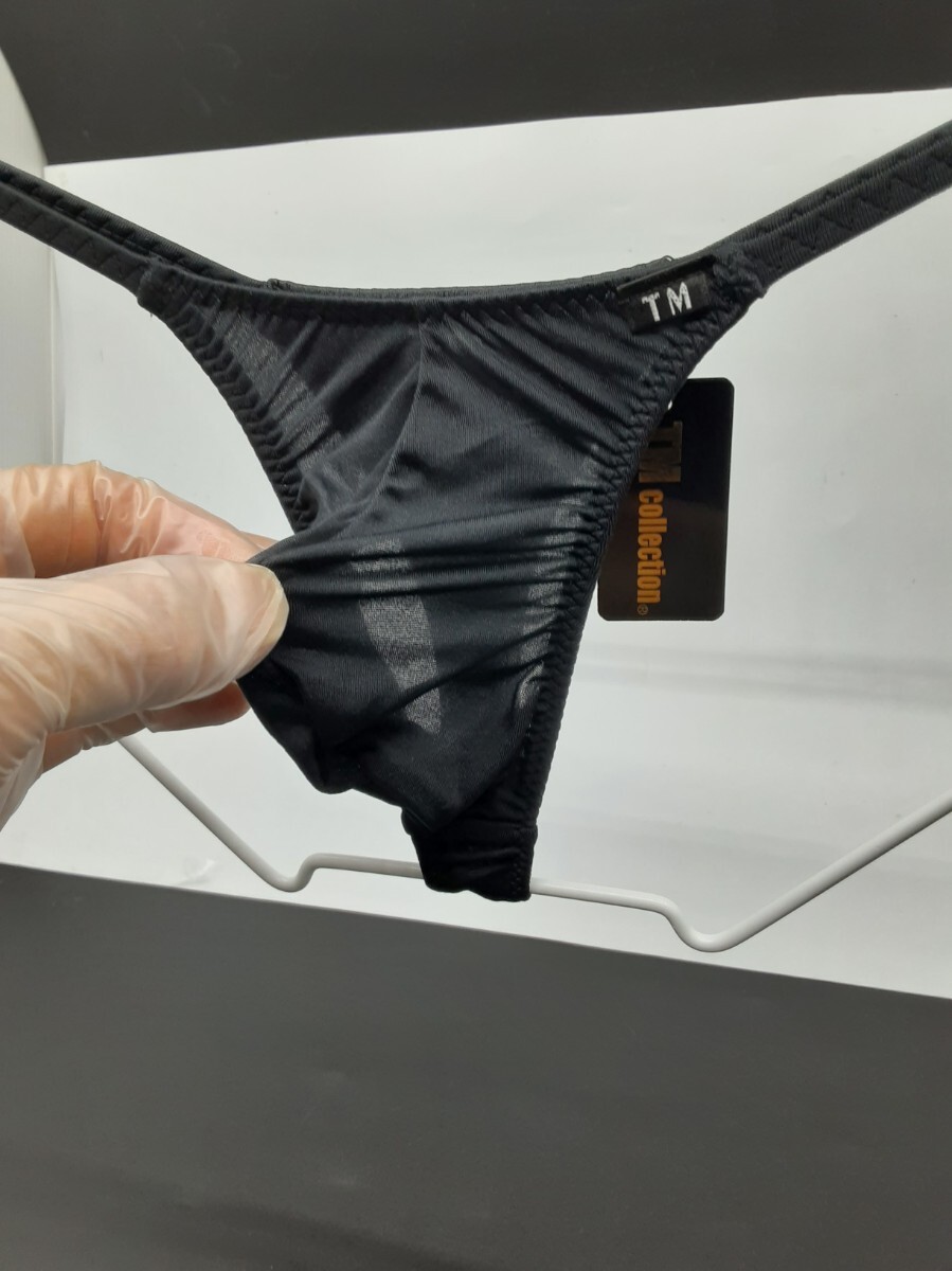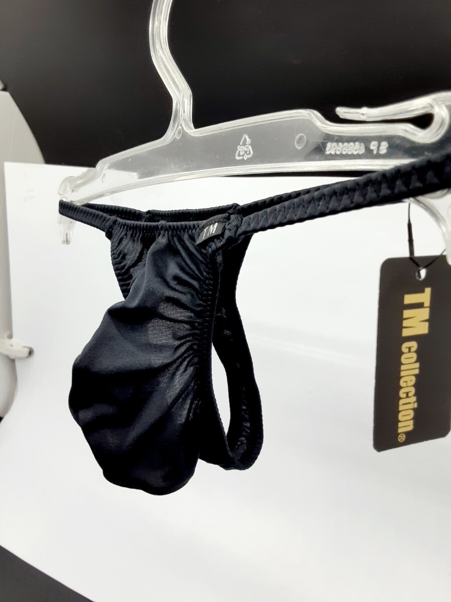 TMコレクション ツルツルモチモチとした感触が人気のNewT2M2を使用したTバックビキニです!柔らかく、もちもちしたストレッチ素材ならではのパターンで、シャープな作りの商品です!ブラック Lサイズ フロントフルシーム すごく伸びてかなり薄いです。