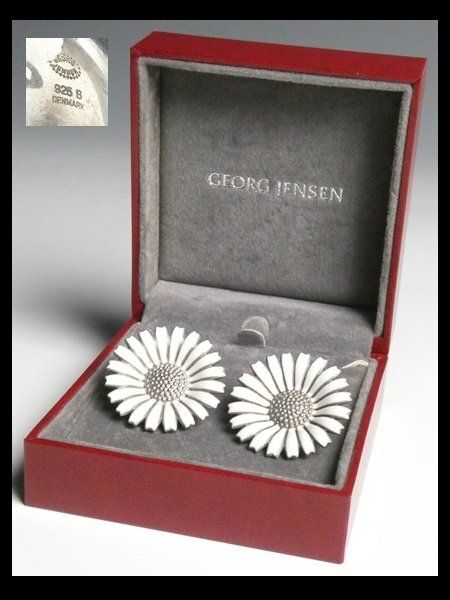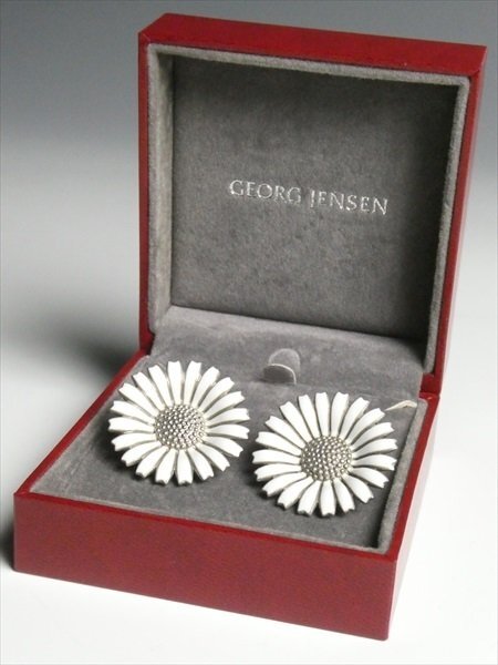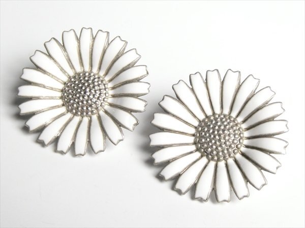 ジョージ ジェンセン デンマーク スターリング シルバー 銀製 Georg Jensen デイジー ホワイトエナメル イヤリング アクセサリー N611
