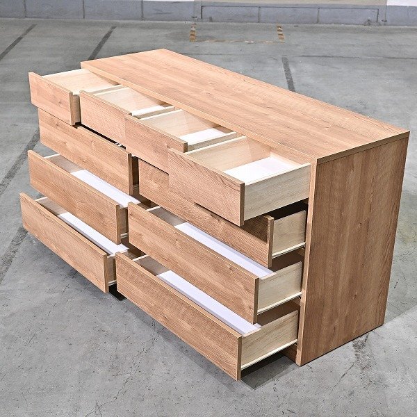 引き出しは大小合わせて多数配置されており、衣類や日用品の整理に最適。
