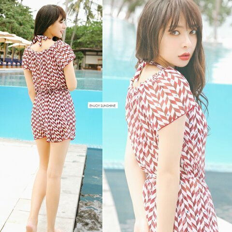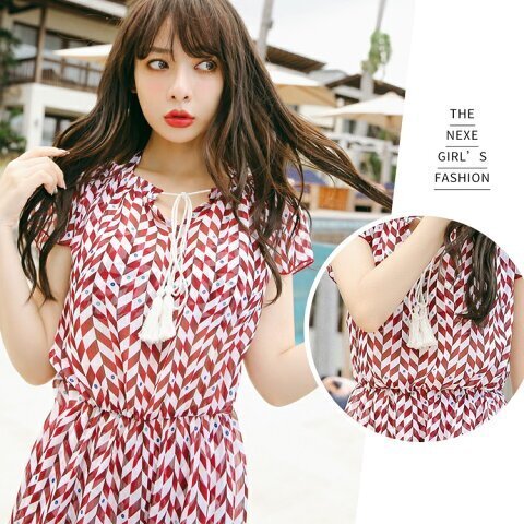 Product name: 水着 体型カバー タンキニ レディース セット フィットネス 3点セット 安い ストライプ(レッド系) XLサイズ