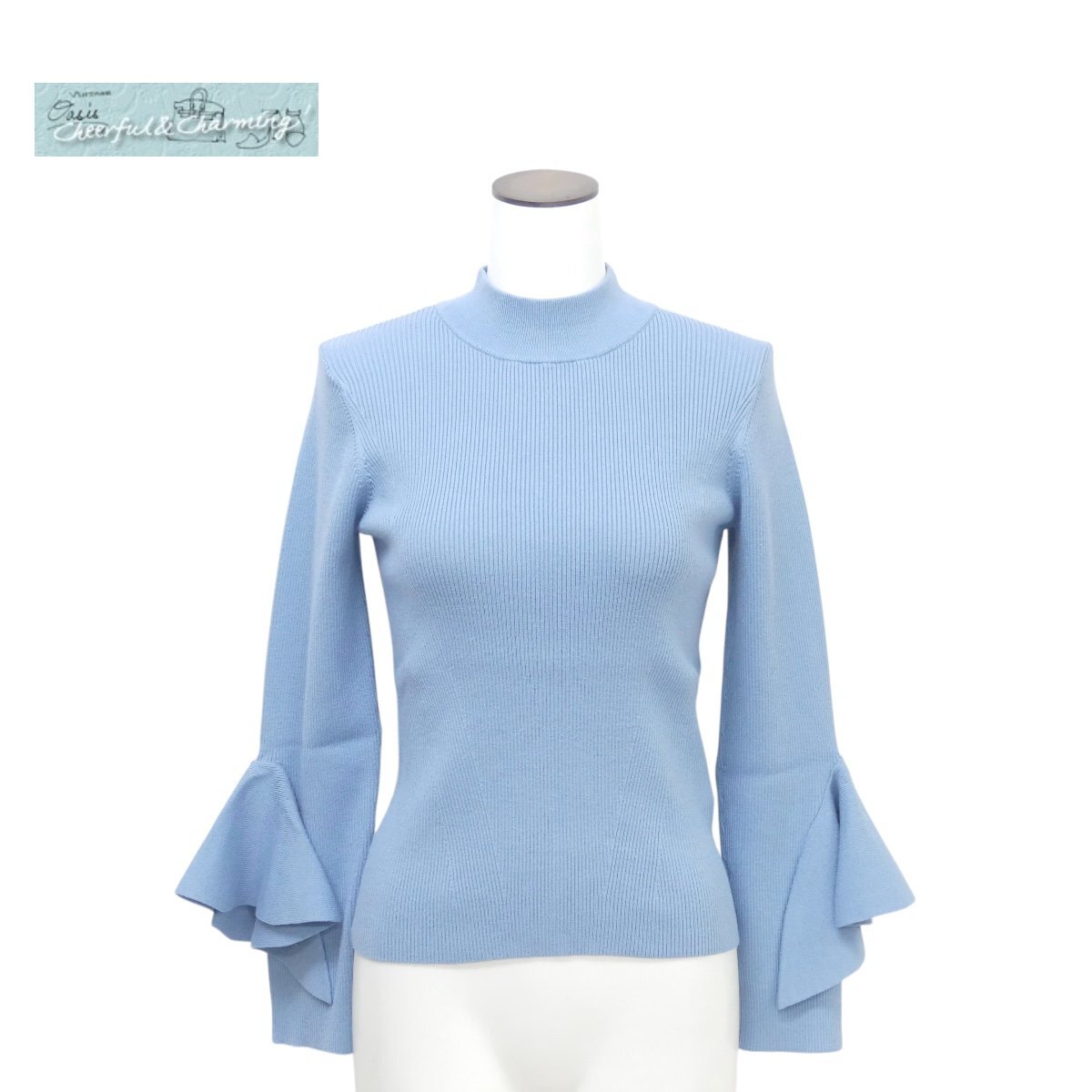 ANAYI ラッスルスリーブリブニットプルオーバー 38 ブルー レーヨンBLEND '23年商品