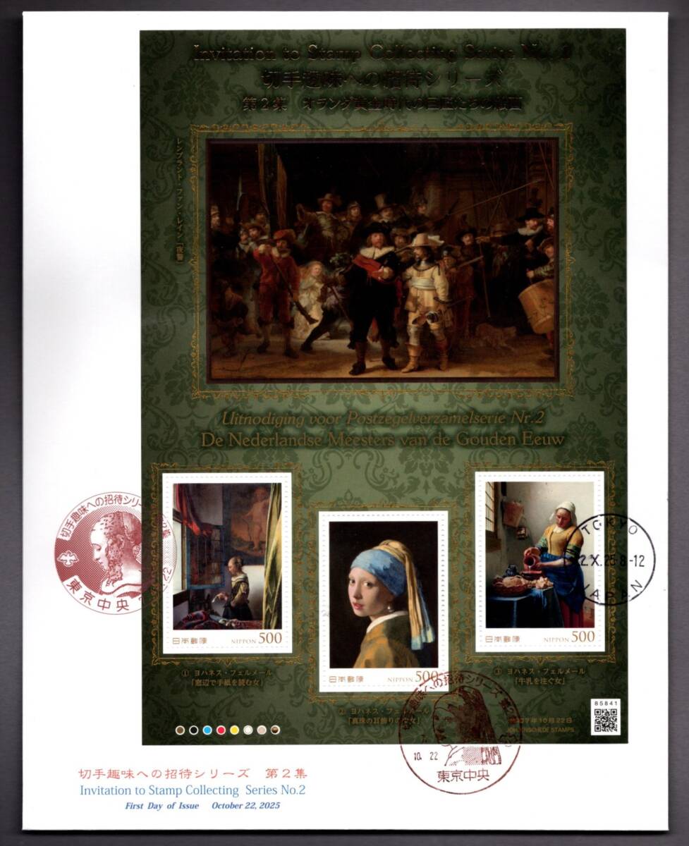 切手趣味への招待 FDC 1枚限定作成 切手 東京中央 日本切手 特印 初日カバー フェルメール エンスケデ オランダ 真珠 耳飾り 少女