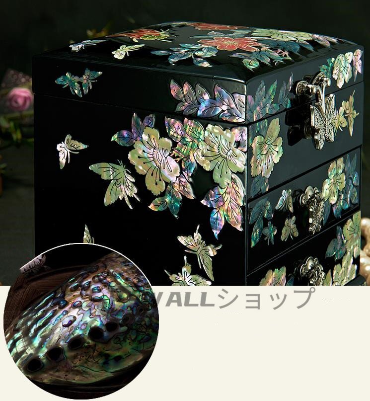 Product name: 超人気高級感★純手作り製作 漆器 天然シェル 木製 真珠層ラッカー貝殻ジュエリーボックス宝石箱結婚アクセサリーケース箱多層