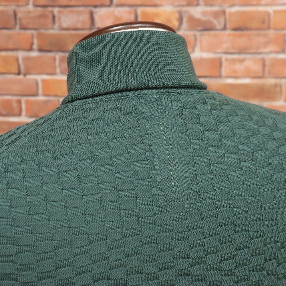 Product name: 1円/秋冬/MASQ/XLサイズ/長袖ニット イタリア製 スクエア柄 メリノウール タートルネック マスク 新品/緑/グリーン/ma398/