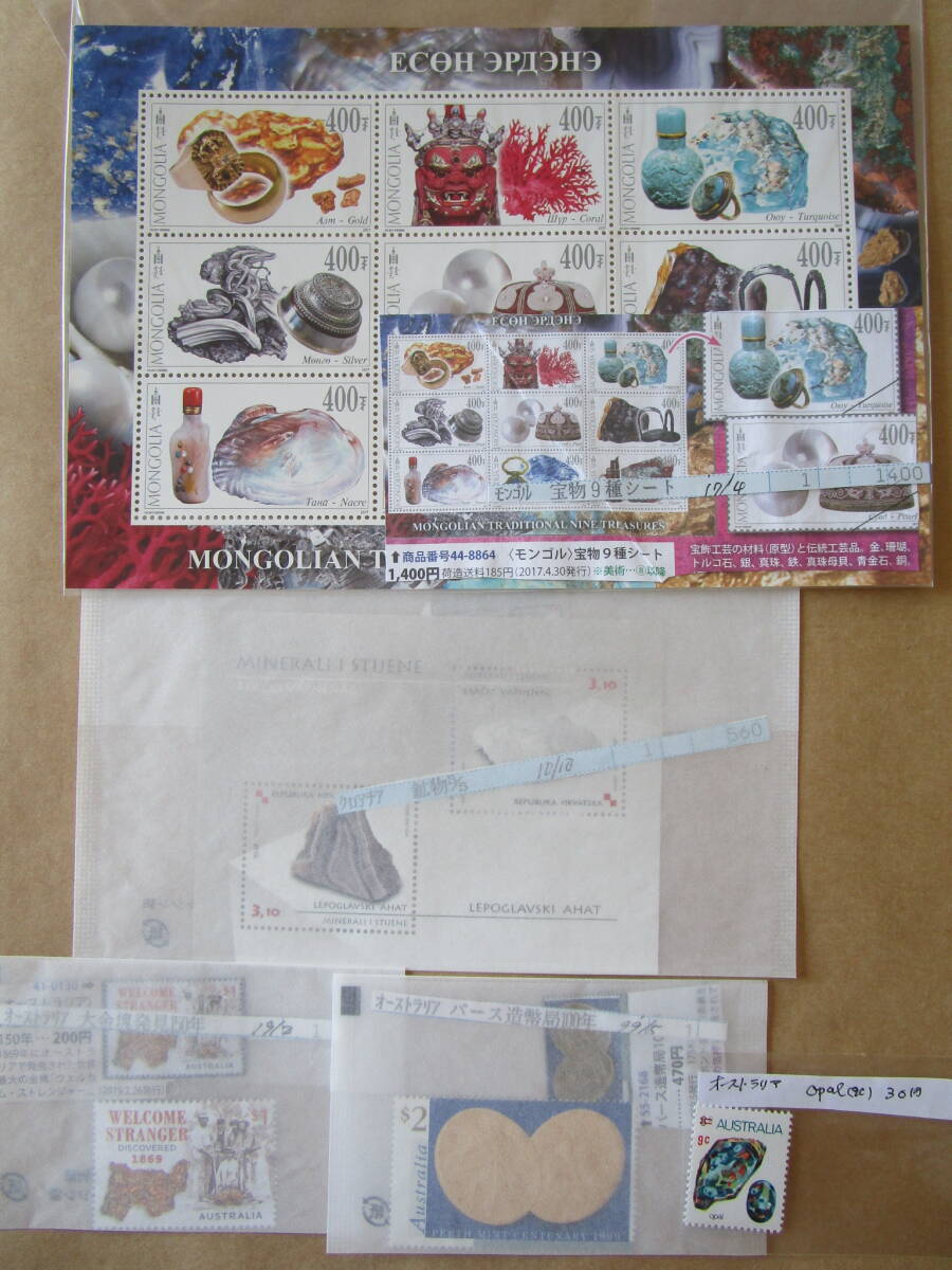 Product name: ★真珠、宝石、鉱物、勲章など 未使用44枚 13シート★