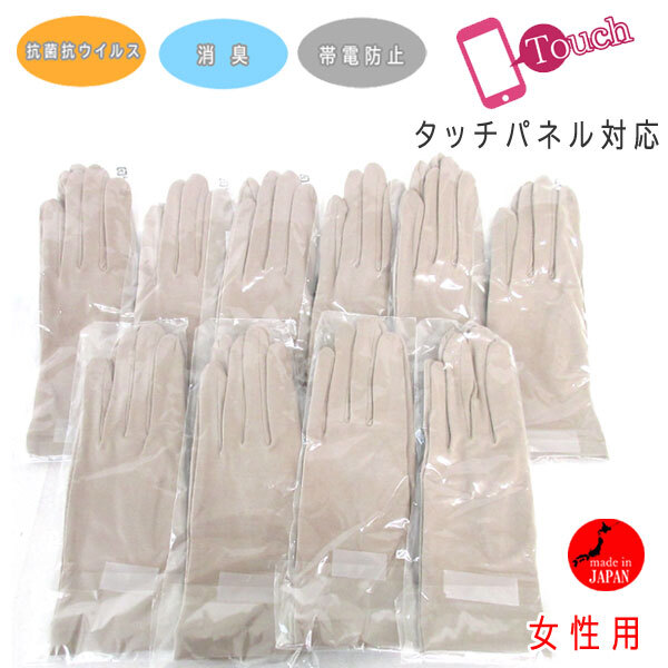 レディース クロダ 抗菌抗ウイルス 消臭・帯電防止 グローブ(BA70012L9) グレージュ 10点