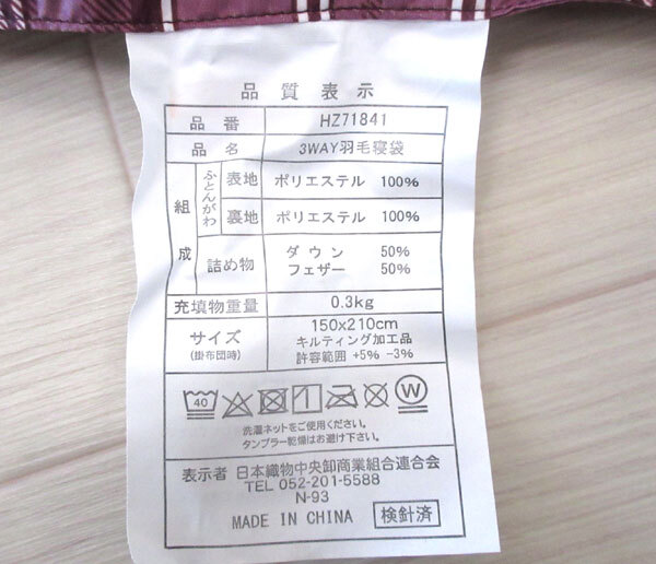 Product name: 送料300円(税込)■oa072■3WAY羽毛寝袋 ワイン 6980円相当【シンオク】