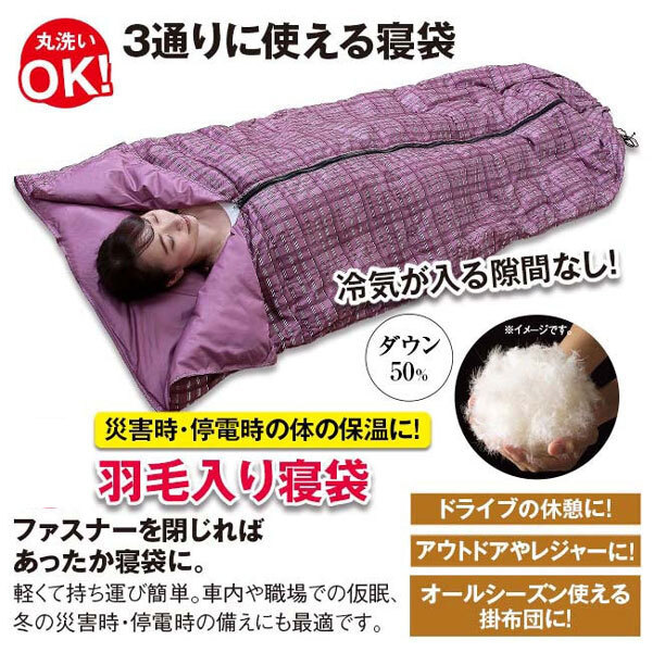 送料300円(税込)■oa072■3WAY羽毛寝袋 ワイン 6980円相当【シンオク】