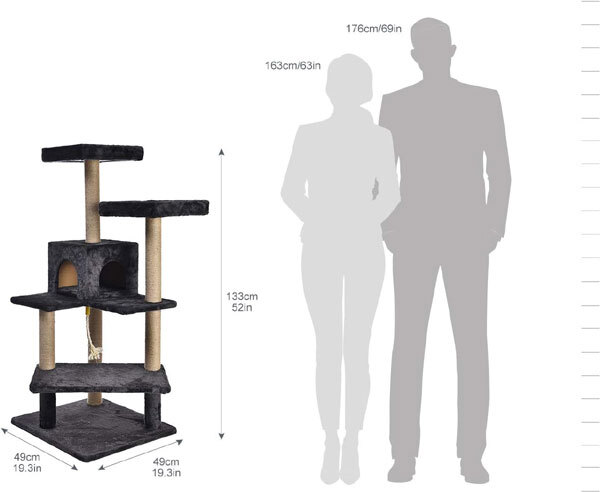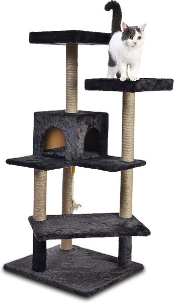 ●スクラッチ用の柱と囲いのあるマルチプラットフォームの猫用ツリー