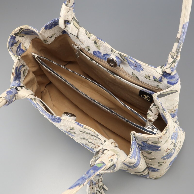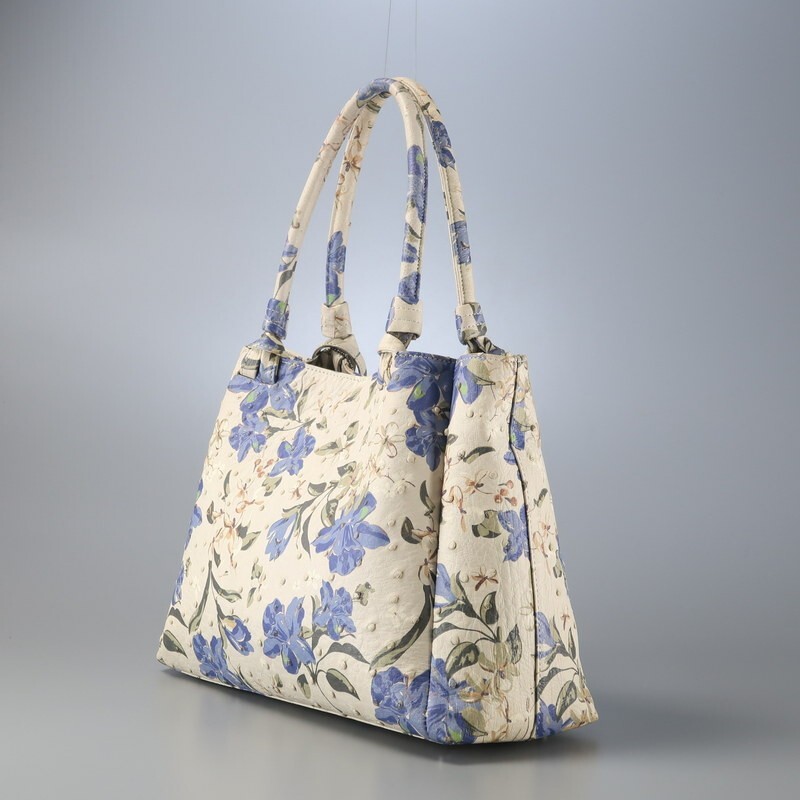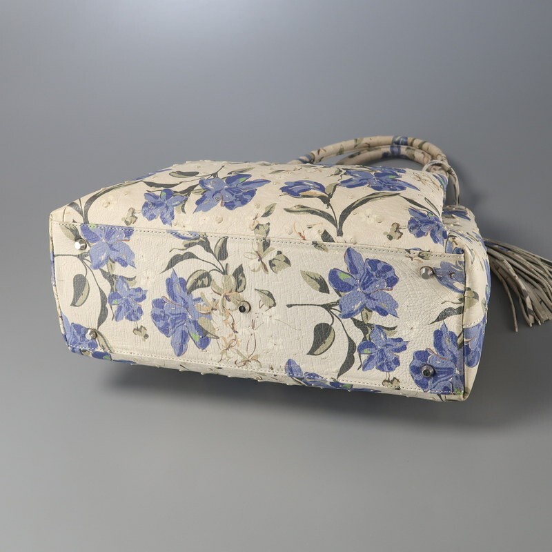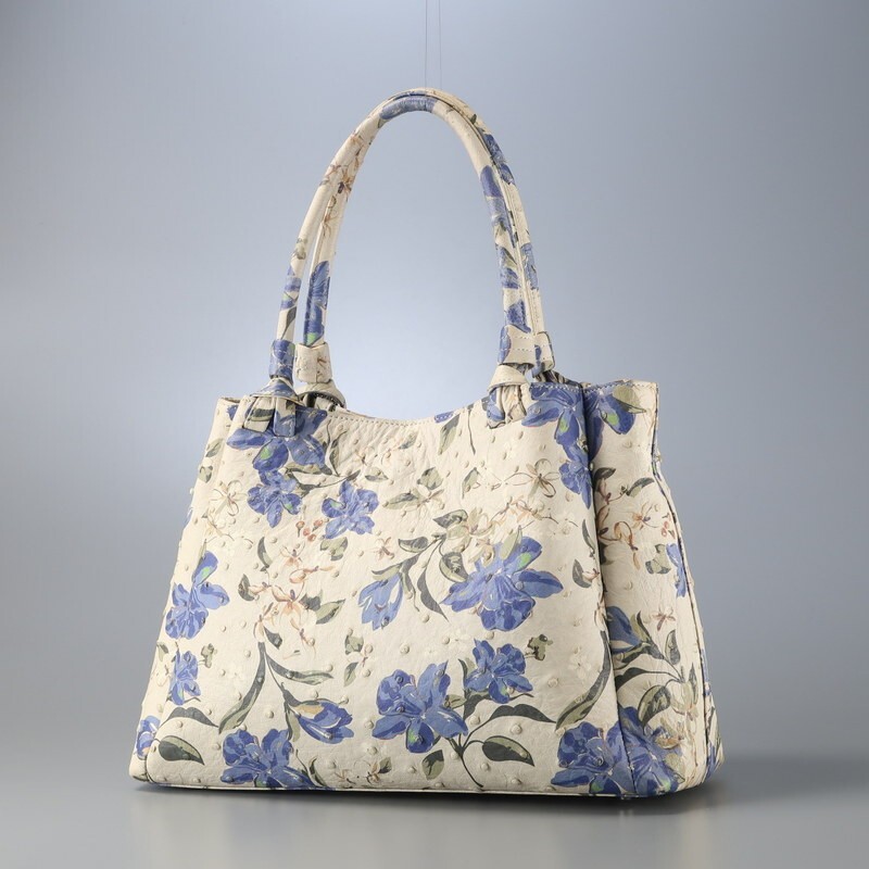 Product name: GS4201■JRA認定 フルポイント オーストリッチレザー 本ダチョウ革 ハンドバッグ トートバッグ 手提げ 鞄 2室構成 花柄 フラワープリント