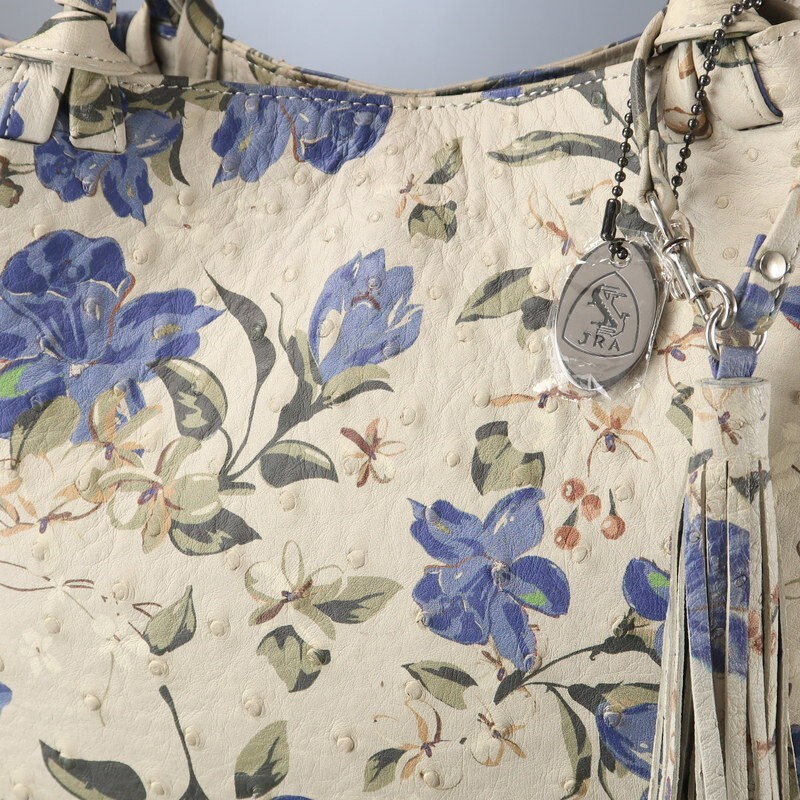 GS4201■JRA認定 フルポイント オーストリッチレザー 本ダチョウ革 ハンドバッグ トートバッグ 手提げ 鞄 2室構成 花柄 フラワープリント