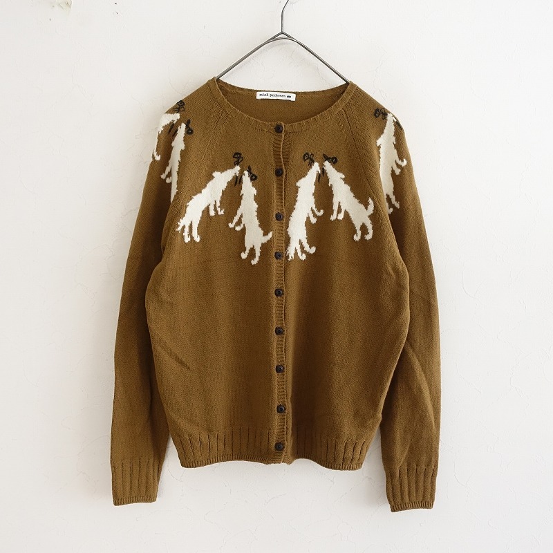 【定価5.2万】ミナペルホネン mina perhonen *wolf&flower コットンニットカーディガン*38ライトブラウン(33-2510-116)【42J52】
