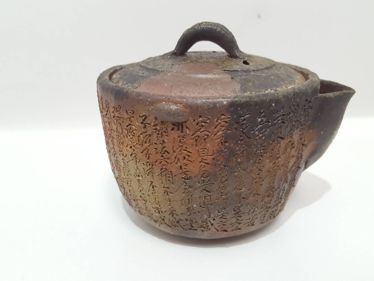 Product name: 【うぶだし】備前焼 西坂春水(剛)造 般若心経彫 宝瓶/栞付き/共箱付き/茶器/急須/煎茶道具/約10×6.5cm/手造り宝瓶/手捻り/06KO102203