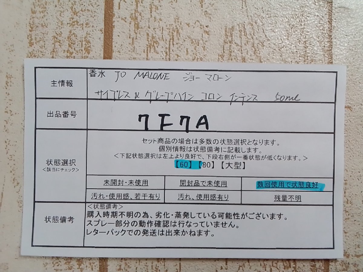 Product name: ☆香水 JO MALONE LONDON ジョーマローン サイプレス&グレープバイン コロン インテンス 7F7A 【60】