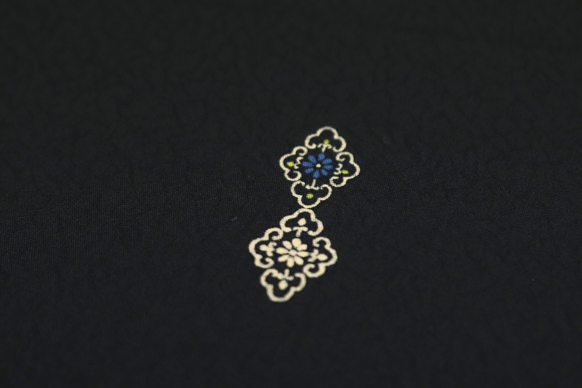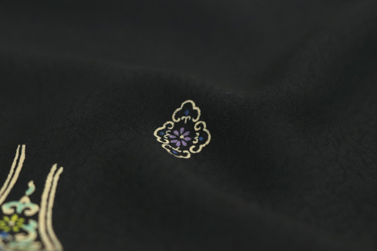 氷割れ文の地紋入りのシルックの地は、黒色のお色目でございます。