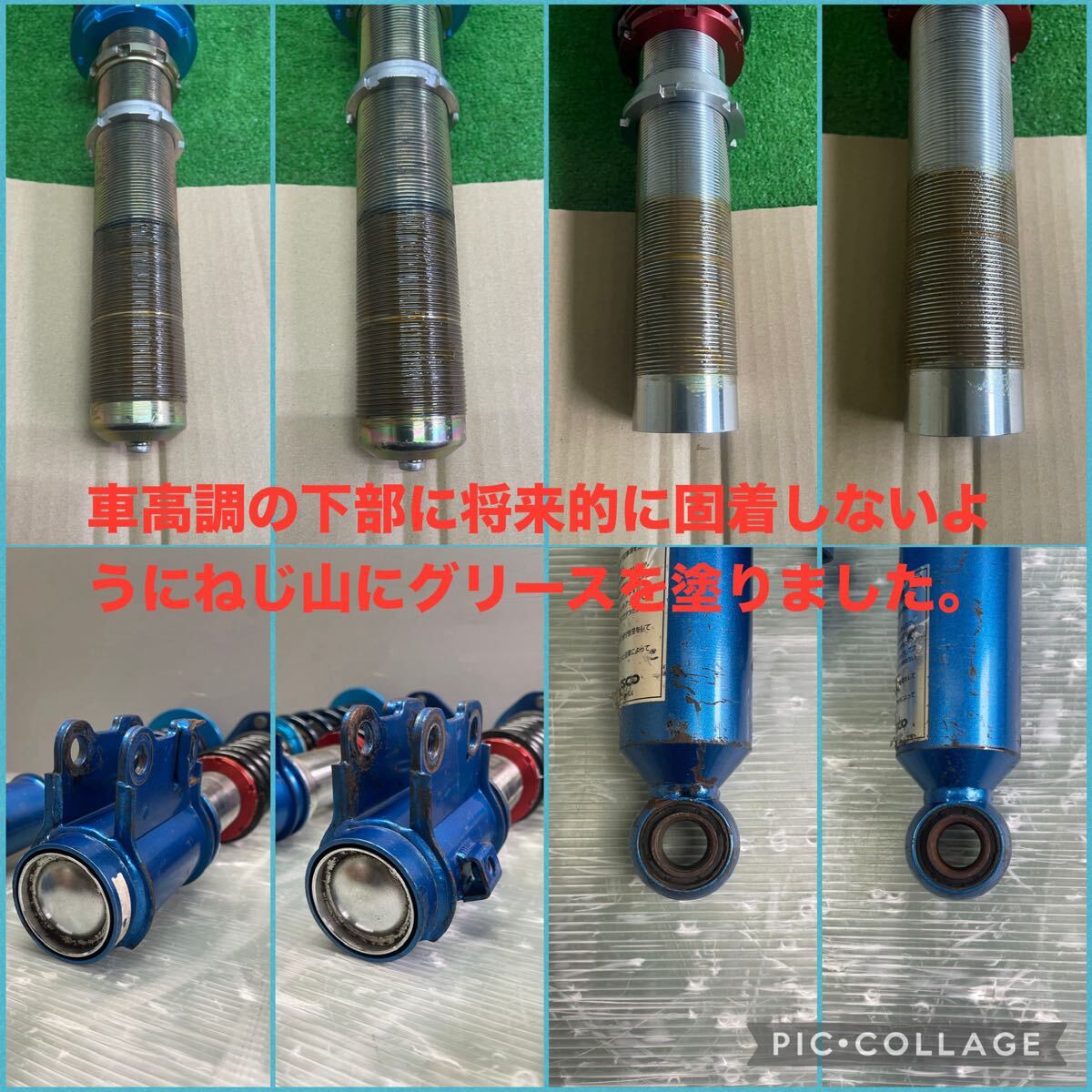 車高調の下部に将来的に固着しないようにねじ山にグリースを塗りました。