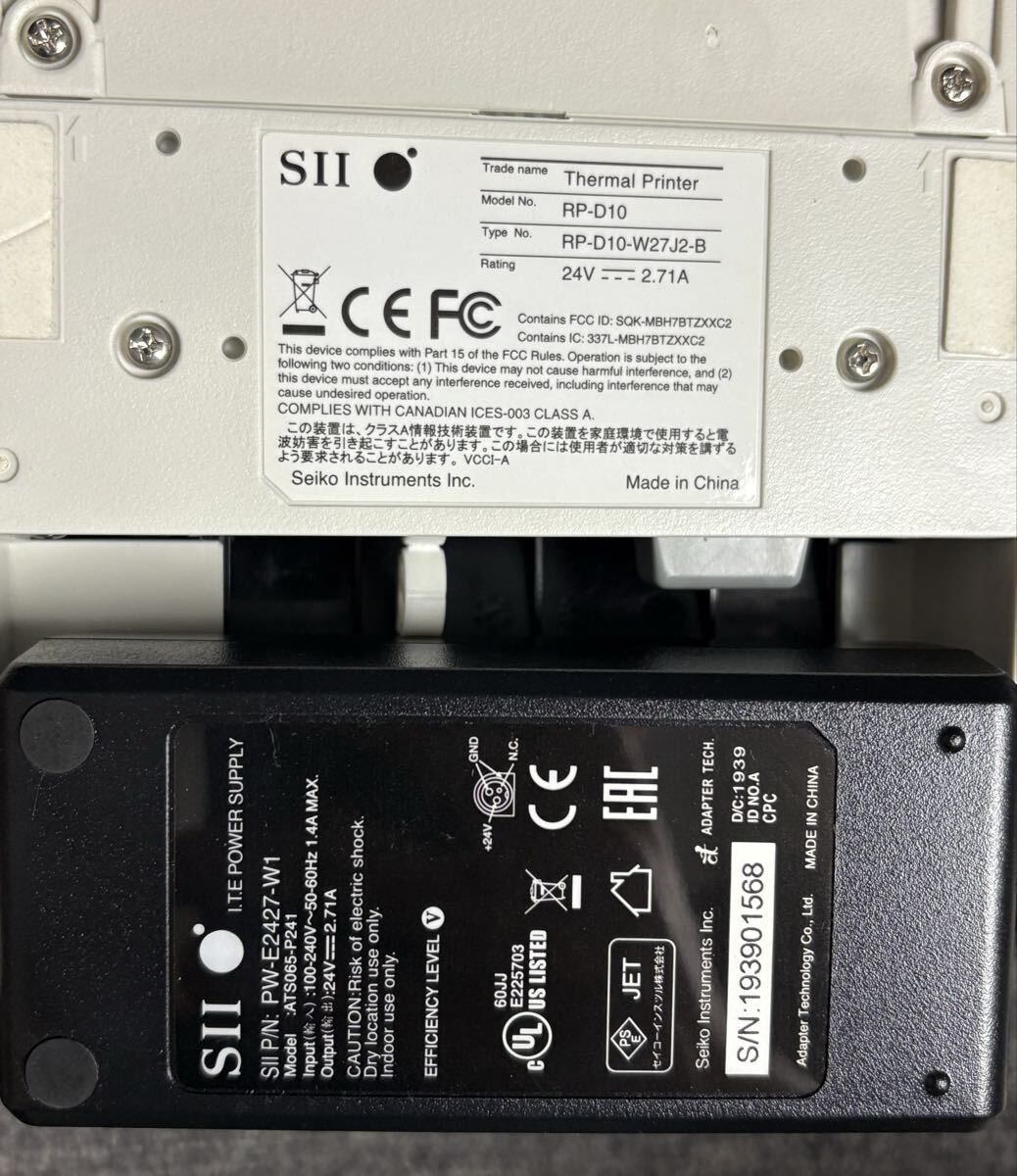 Product name: 内444 セイコーインスツル SII レシートプリンタ『RP-D10』レシートプリンター/SII ACアダプター『PW-E2427-W1』店舗用品 ②