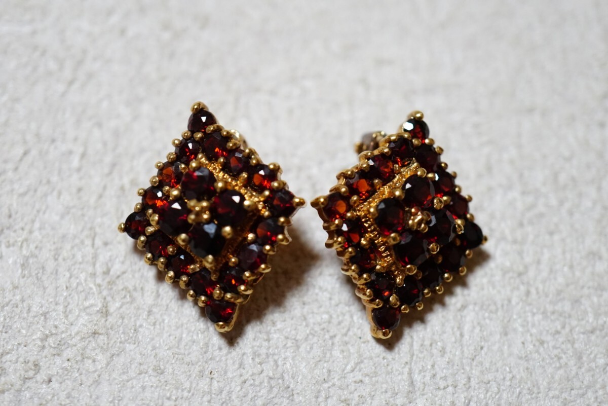 Product name: 1535 海外製 ガーネット イヤリング 両耳揃い ヴィンテージ アクセサリー SILVER 925刻印 宝石 色石 カラーストーン 装飾品