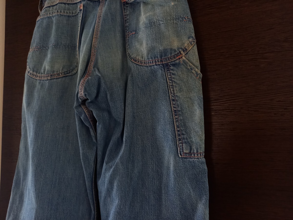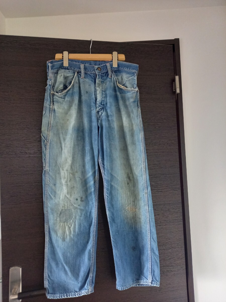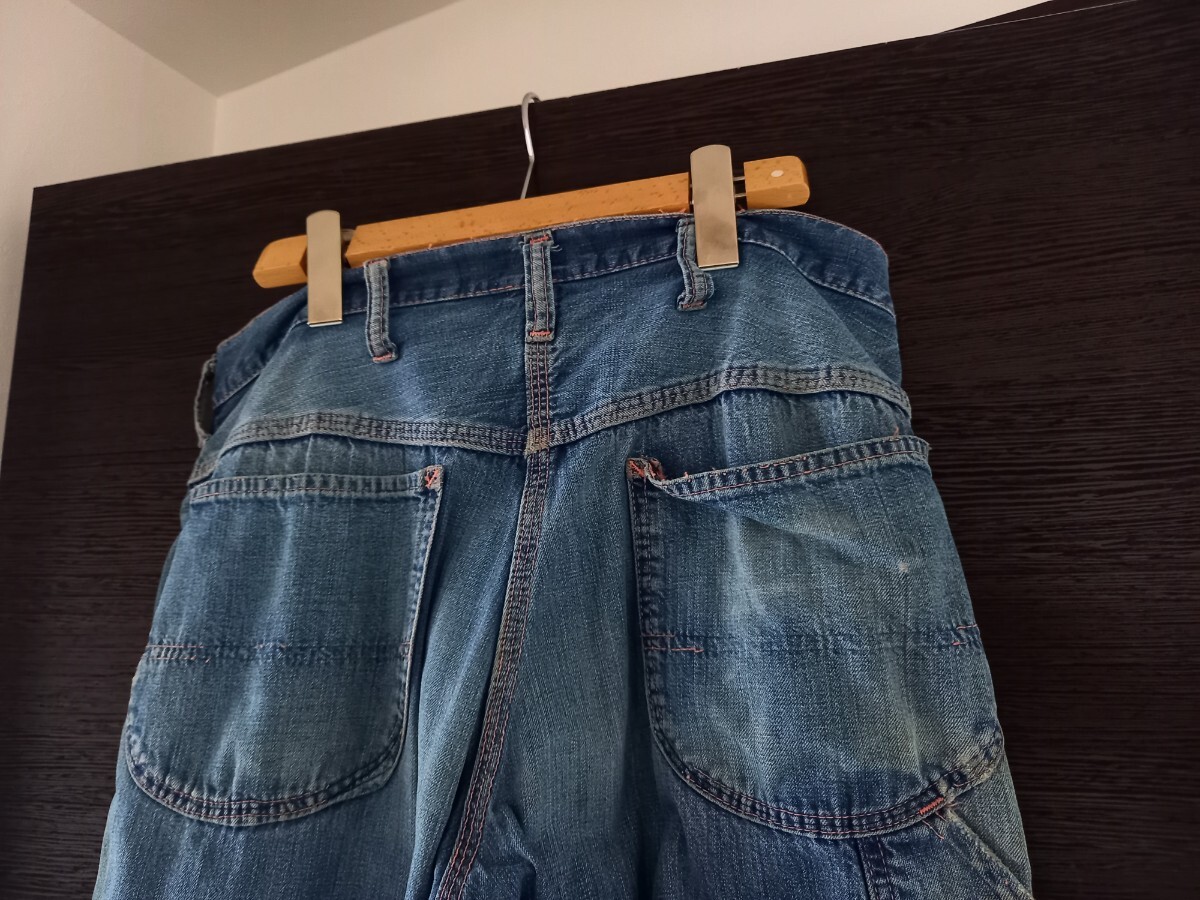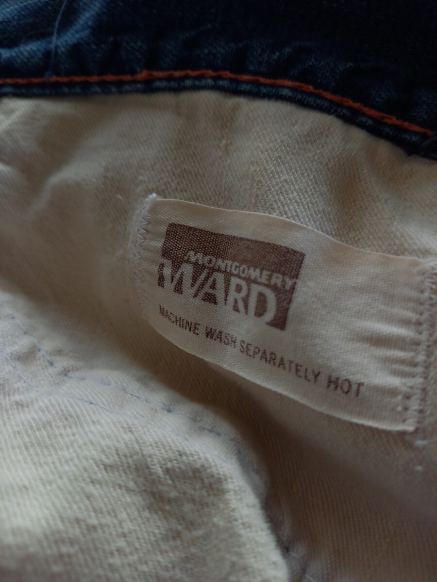 ビンテージ古着屋で購入したビンテージ 60s モンゴメリーワード ペインター ワーク 縦落ち デニム USA製 パッチワーク リペア パンツ sizeW33相当です。ウエスト約84レングス約72センチです。状態はビンテージならではのフェード感とカッコいいリペアがあります。生地も、まだまだ丈夫な方で全体的にまだまだ着用できる状態です。最近はパッチワーク的なリペアやフェードされたboroと言われるヴィンテージ物が高騰して人気もあります。