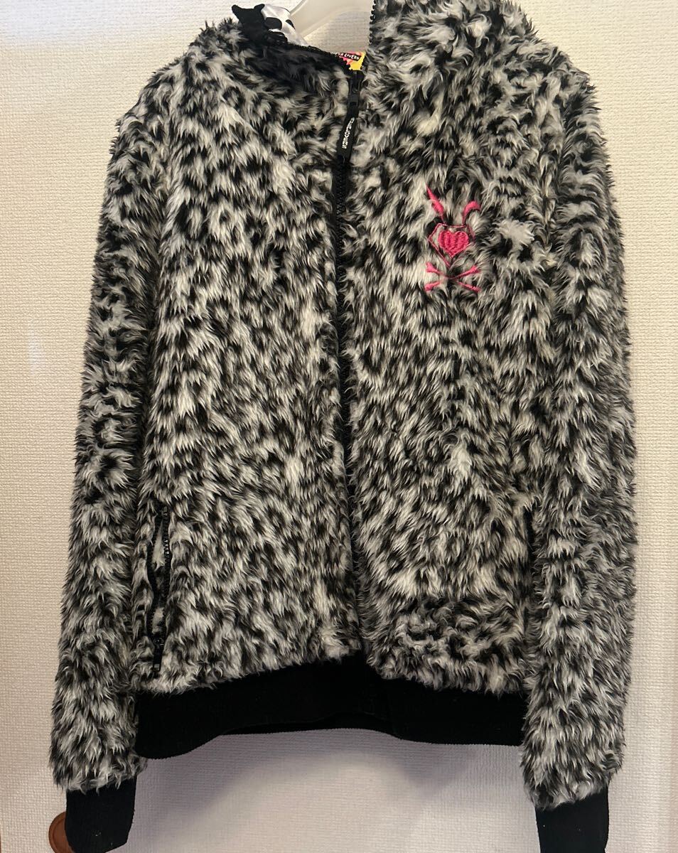 Product name: スーパーラヴァーズ うさ耳あったかブルゾン サイズフリー 黒白 中古 使用感あり superlovers 真冬 上着 防寒 個性的 ヒョウ柄