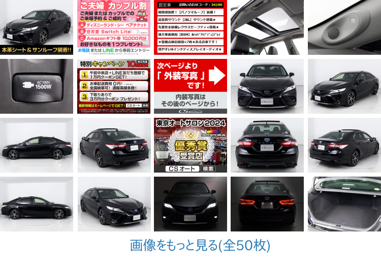 【諸費用コミ】:令和1年 カムリHV WSレザーP サンルーフ黒本革JBLサウンド記録簿7
