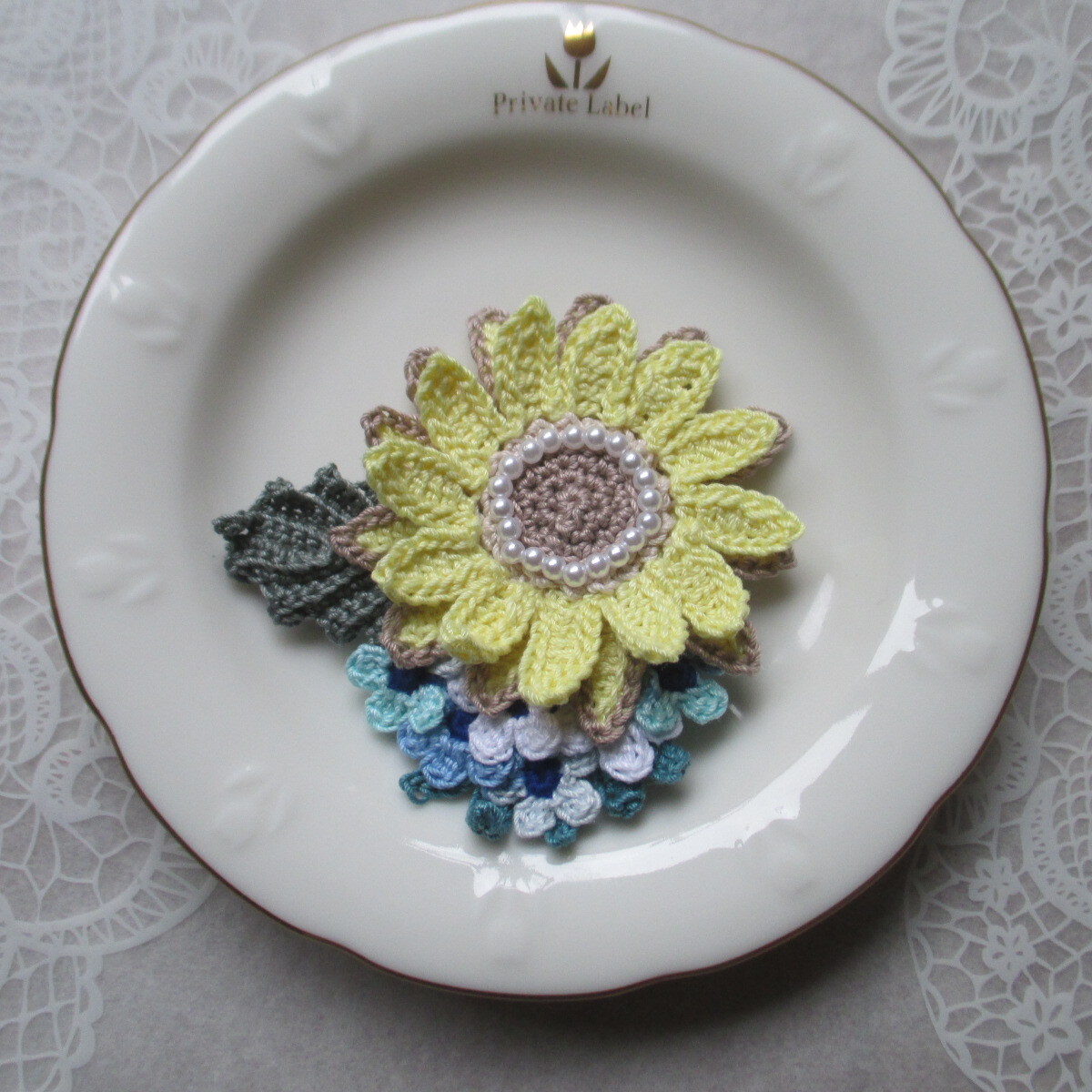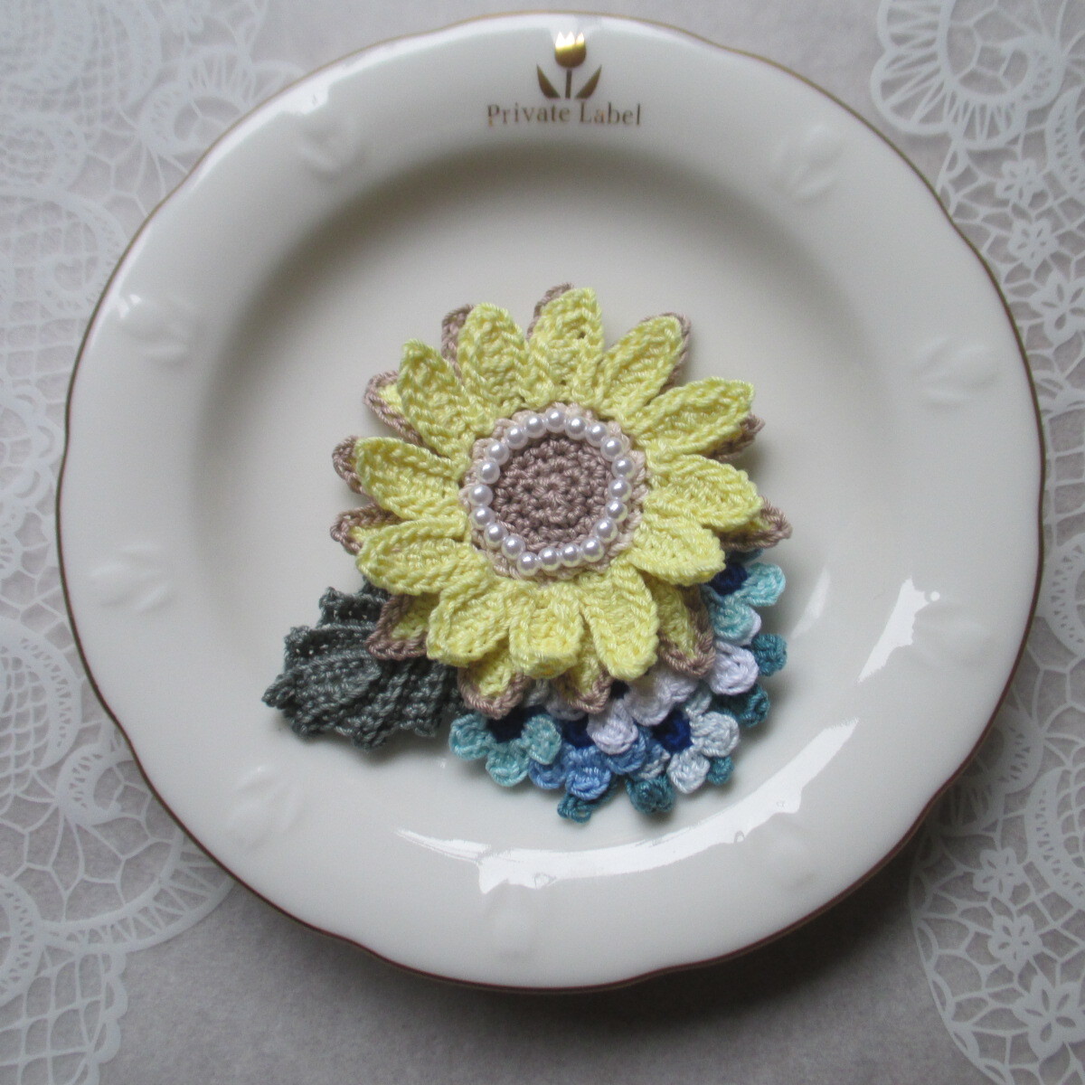ハンドメイド☆レース編み☆大輪ガーベラ&勿忘草のコサージュ