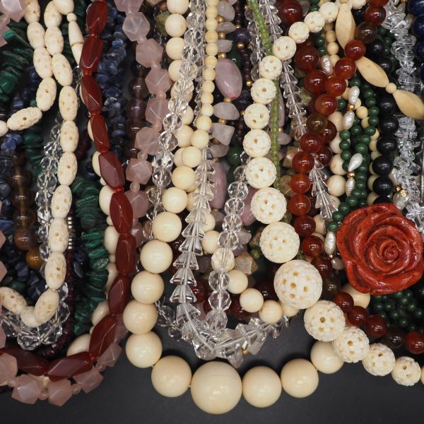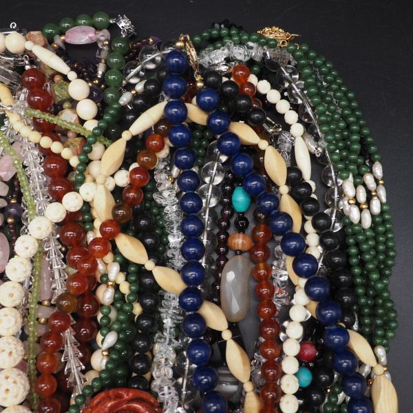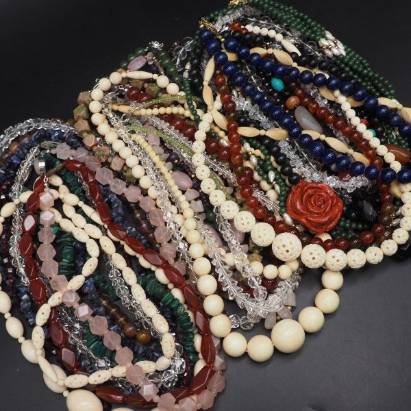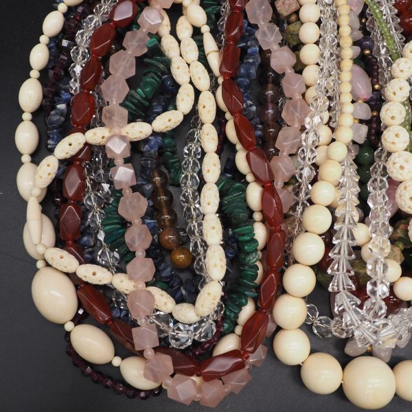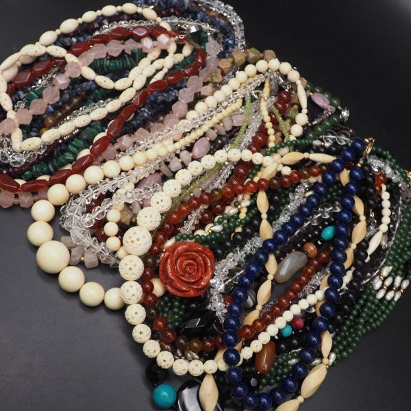(3N1013) 1円 天然石 ネックレス 30本 大量セット アメジスト ローズクォーツ ガーネット 瑪瑙 水晶 シルバー 等 まとめて