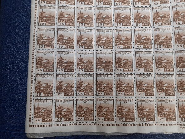 Product name: 1102Y44 日本切手 昭和切手 法隆寺 銘板付き 100面シート *裏面にグラシン紙貼りつき *写真、下にも掲載・詳細は写真参照