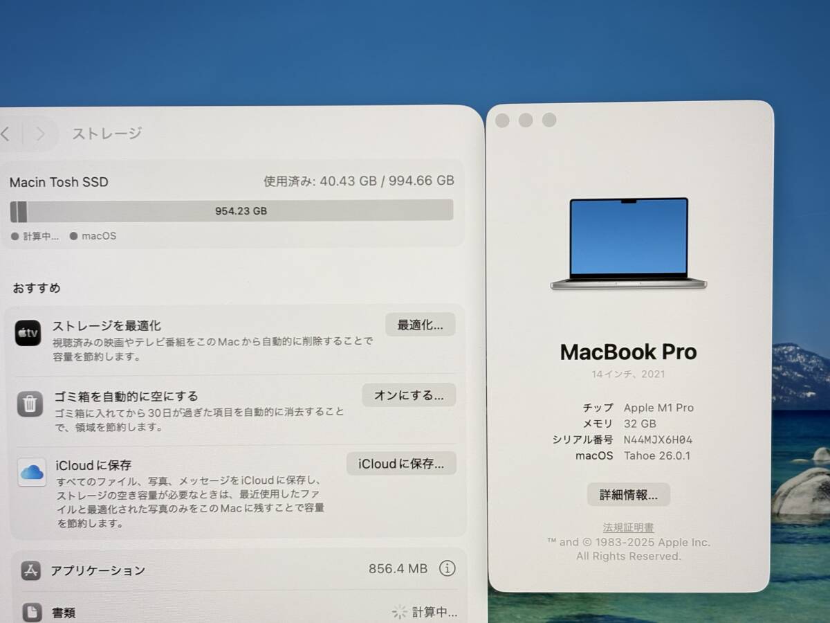 【USキー 美品】Apple MacBook Pro(14-inch,2021) A2442 Apple M1 Pro-10コア/RAM:32GB/SSD:1TB 16コアGPU 充放電数67回 Tahoe 動作品
