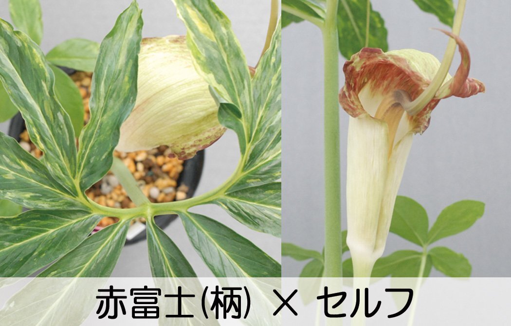ウラシマソウ Afsf 斑入 赤富士交配 『赤富士(柄 斑入)×セルフ』 小球 5球 (C) ★斑入り★【外れたて小球】 (浦島草、山野草、テンナンシ