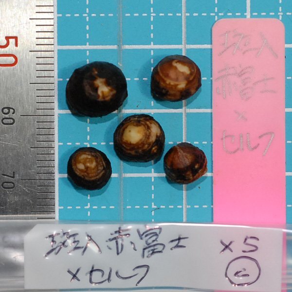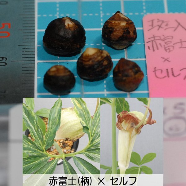 ウラシマソウ斑入 赤富士交配 『赤富士(柄 斑入)×セルフ』の小球 5 球です。【オークションの出品が混同しないよう(A)、(B)、(C)…と分けて撮影している品種もあります】