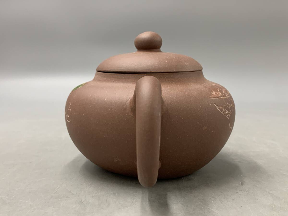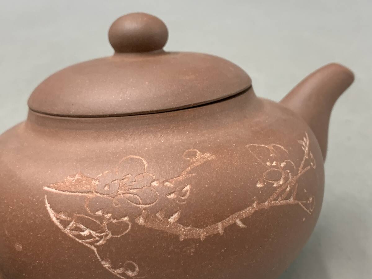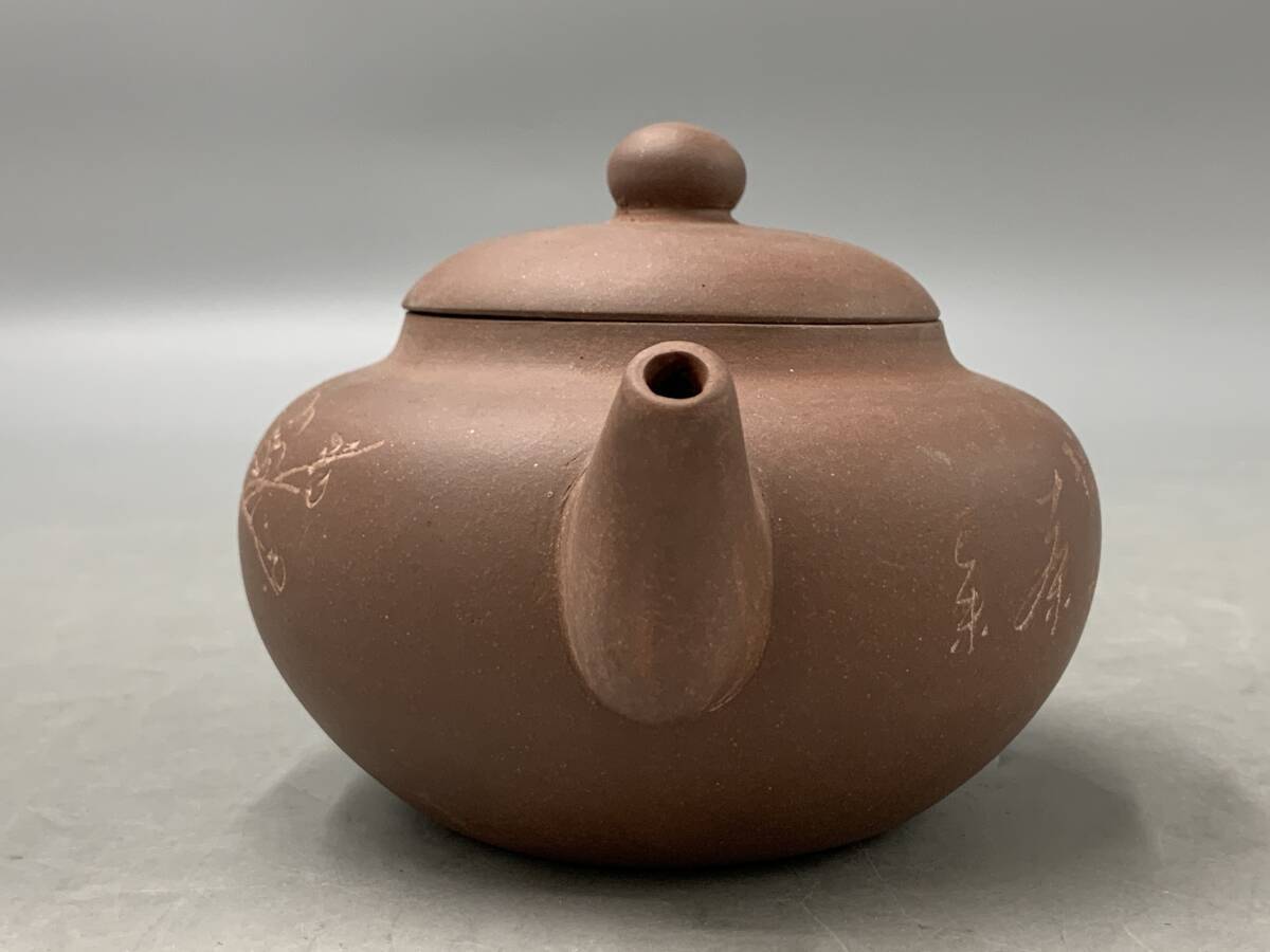 11#B/10250 中国 朱泥急須 中國宜興 後手茶注 新梅 煎茶 茶道 煎茶道具 中国美術 60サイズ