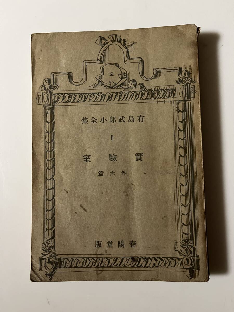 『有島武郎全集II 實驗室 外六篇』(春陽堂文庫、昭和8年、初版)、164頁。三方経年ヤケ。