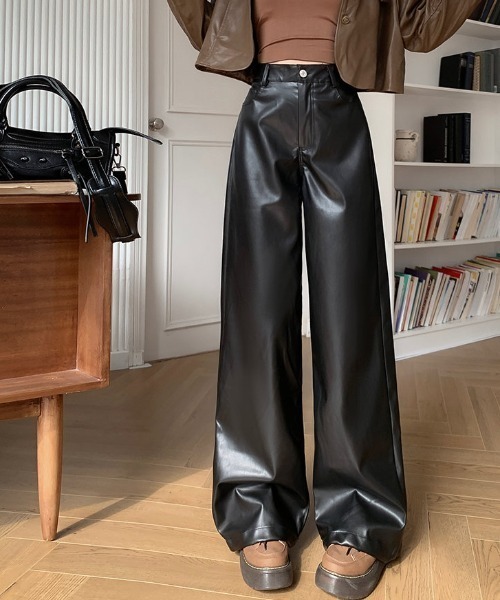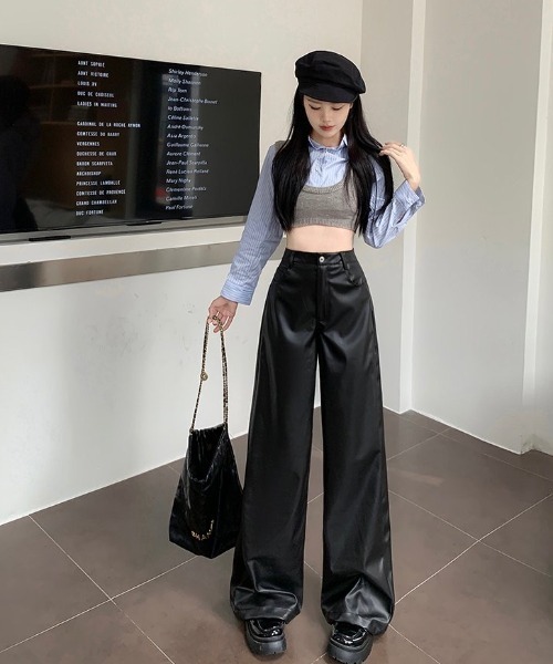 キーワード:パンツ レディース ハイウエスト フルレングス ワイドパンツ 無地 秋 冬