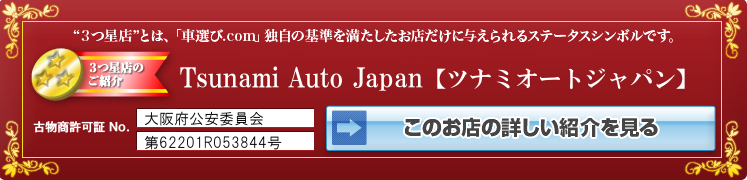 “3つ星店”とは「車選びドットコム」独自の基準を満たした販売店だけに与えられるステータスシンボルです。