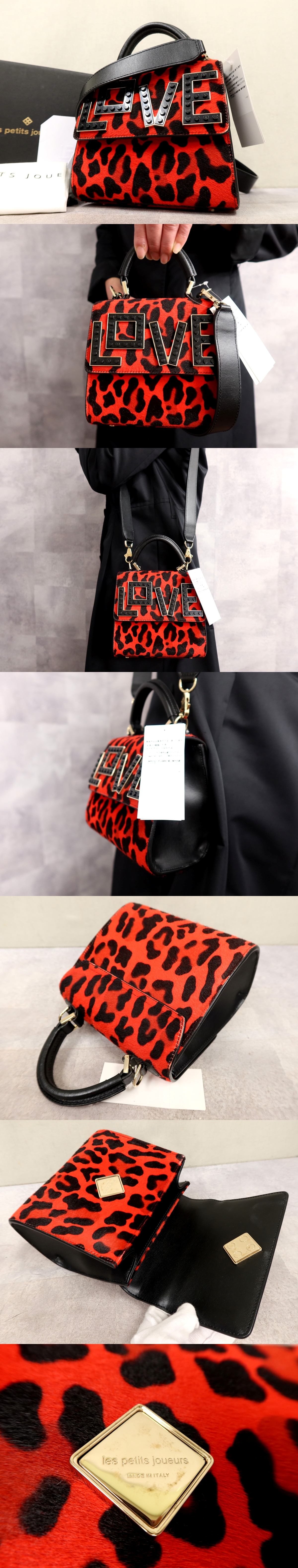 Store ●超美品●LES PETITS JOUEURS レプティジュール●Mini Alex Love Bag●レゴ●ハラコ カーフ レザー●2way ハンド バッグ●赤 黒●Js65497