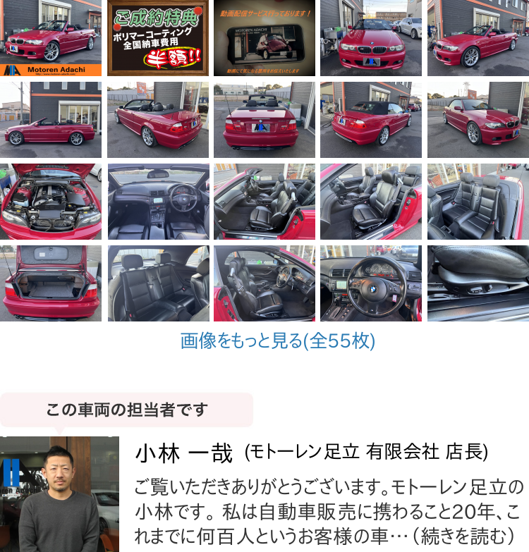 ★★ 落札価格は消費税込みとなります!★★弊社、モトーレン足立(有)は、輸入車販売のプロショップでございます。新、中古車の販売、保険事業、レンタカー事業、法定点検整備や車検、カスタムなどお車の事なら何でもお任せ下さいませ。