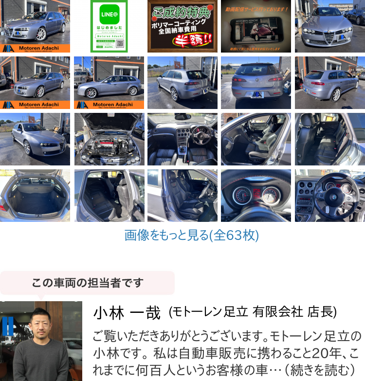 Product name: 【諸費用コミ】返金保証付&鑑定書付:10yアルファロメオ159スポーツワゴン2.2 JTS TI 1オーナー