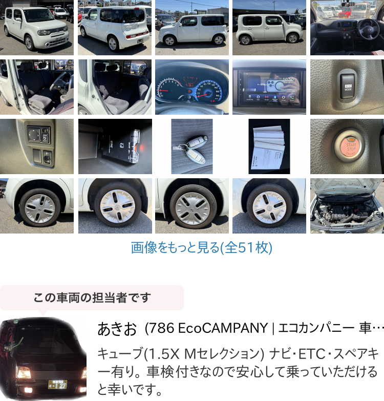 Product name: 【諸費用コミ】:キューブ 1.5 15X Mセレクション 車検2年 点検整備有 保証付(1か月/1000㎞) スペアキー(2個)