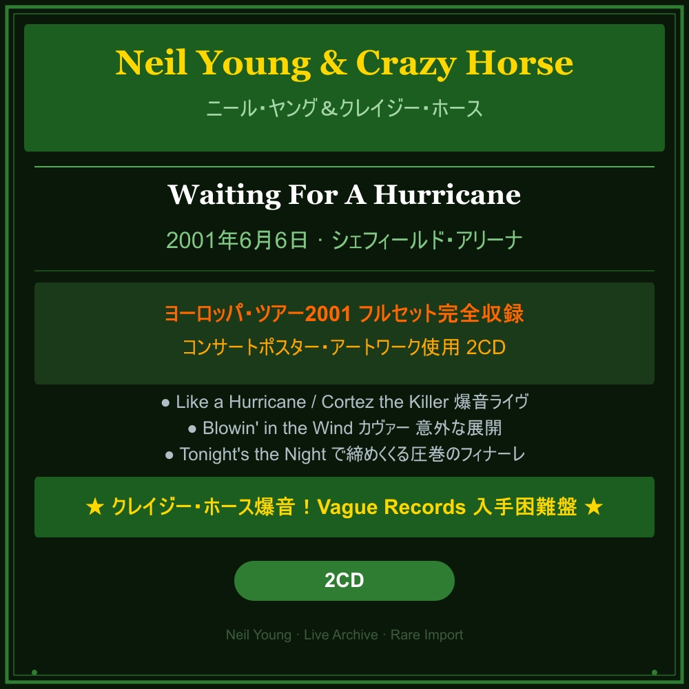 ●Neil Young & Crazy Horse / ニール・ヤング&クレイジー・ホース● Waiting For A Hurricane 2001年6月6日 輸入盤2CD